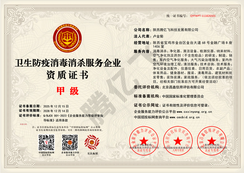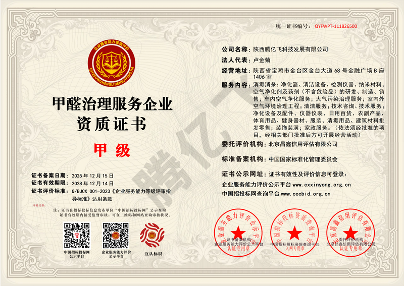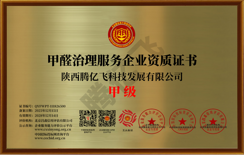 甲醛治理服务企业资质证书